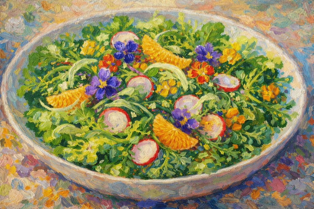 Some afternoons, when the light is particularly theatrical, I find myself painting the salad before I eat it. Broad strokes of viridian, splashes of coral radish, the pale ivory of fennel arcs. Impressionism was never meant for stew alone.