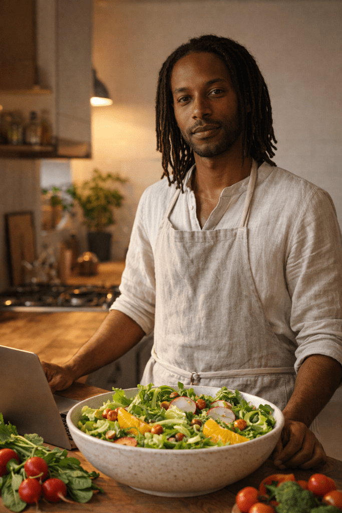I’m a lean Black English man with dreadlocks who looks equally at home behind a keyboard or behind a stove. I love long walks through farmers’ markets. I get irrationally excited about heirloom varieties of anything. I believe good knives change lives.