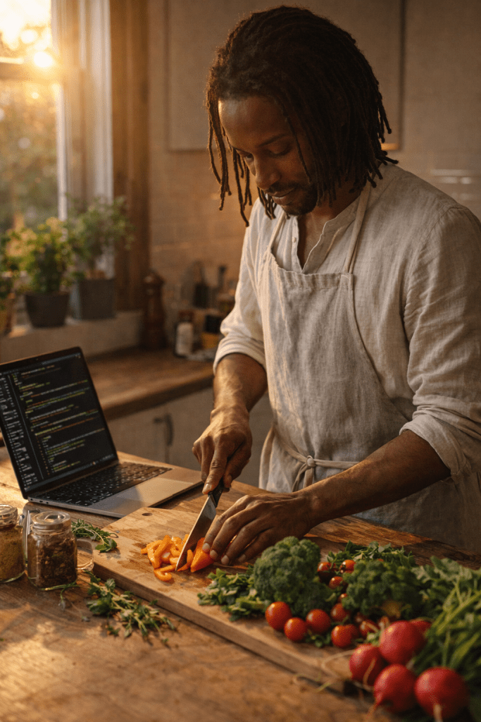 My childhood was filled with the scent of slow-cooked stews and the hum of early desktop computers. I learned to write my first lines of code around the same time I learned that you never throw away vegetable scraps—they become stock. Both lessons stuck. One taught me about logic; the other taught me about care.